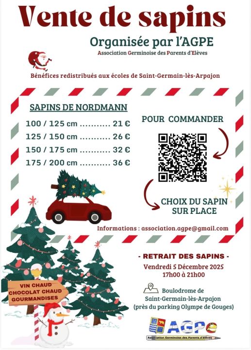 L'AGPE organise une vente de sapins. Vous trouverez le flyer en PJ.